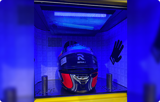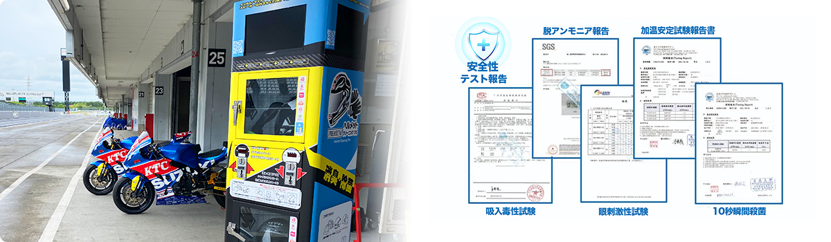 発明特許を取得しており、霧発生モジュールによる洗浄機を利用し、ヘルメット全体の菌と臭いを分解後に乾燥をかけます。手袋などの小物類の消毒も対応可能です。また、吸気ファンや排気ファンを組み合わせ、迅速に乾燥することで、短時間で清潔なヘルメットへ。